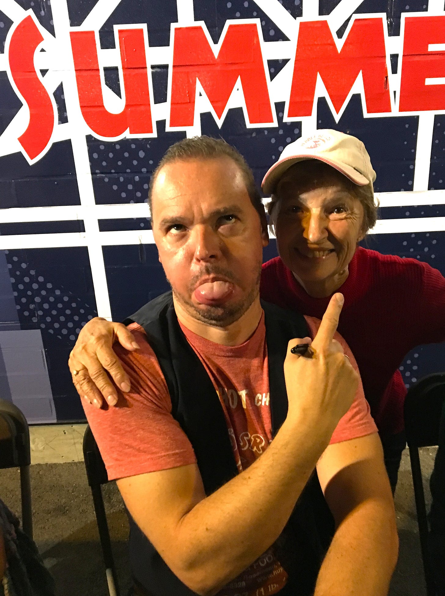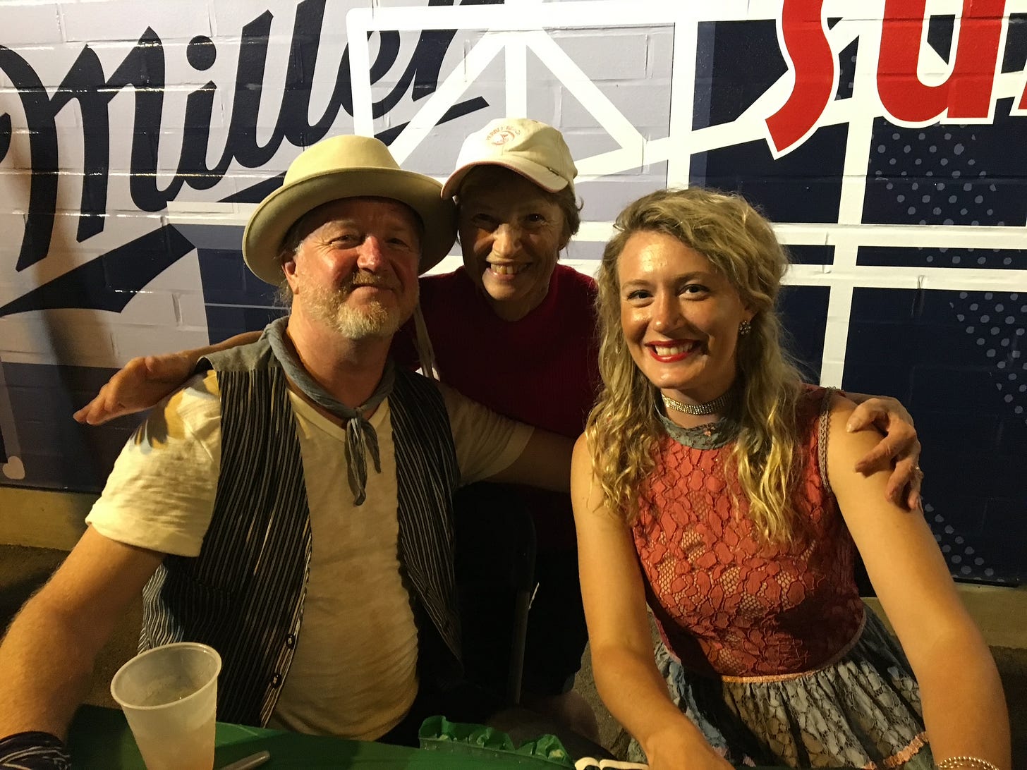 — “Tell Me Ma” by Gaelic Storm. Again, this Irish band was more my fixation than Cheryl’s. But we also saw it four times—once here in Janesville, twice at Madison’s Barrymore, and the last time at Milwaukee’s Irish Fest. After that festival show, we bought a CD and band members posed with Cheryl for photos.
